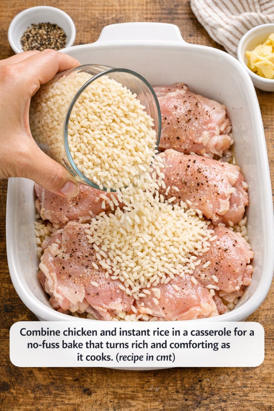 Combine chicken and instant rice in a casserole for a no-fuss bake that turns rich and comforting as it cooks.